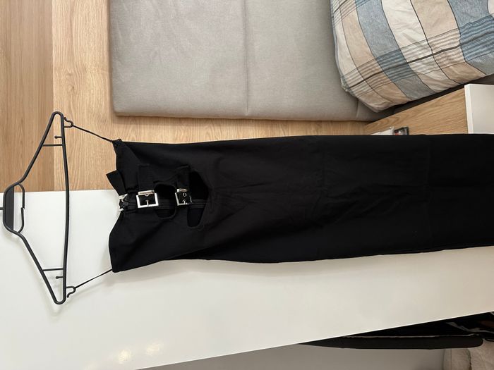 Fustan i zi me rrypa tek dekolteja